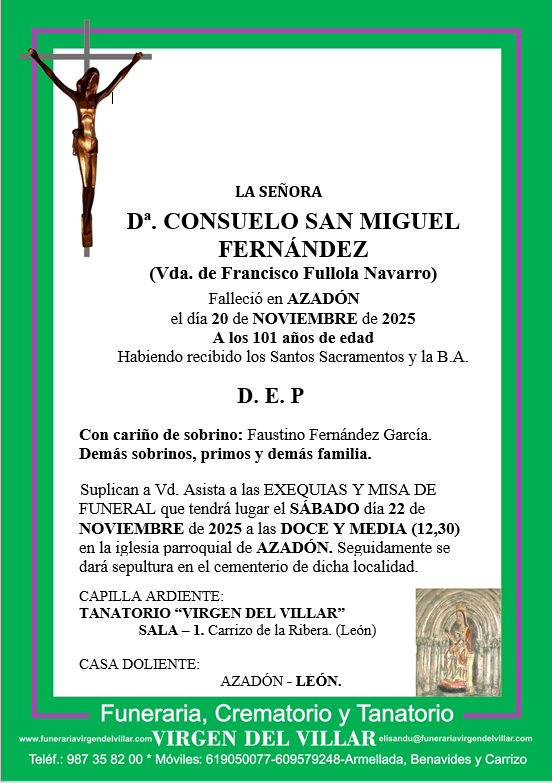 • Dª CONSUELO SAN MIGUEL FERNÁNDEZ 21 noviembre, 2025