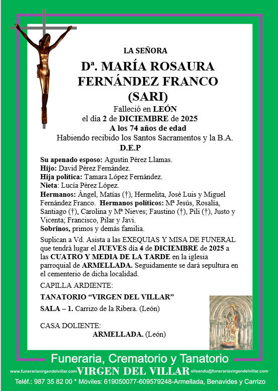 • MARIA ROSAURA FERNANDEZ FRANCO (SARI) 2 diciembre, 2025